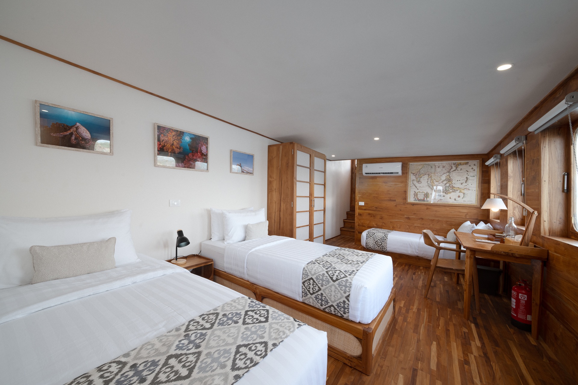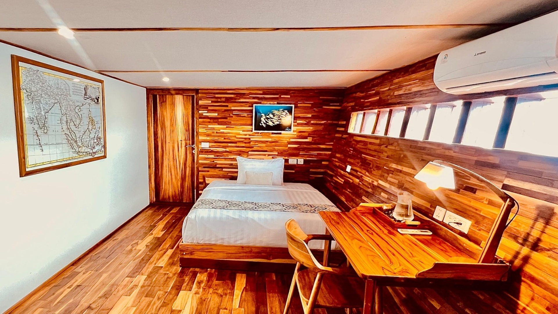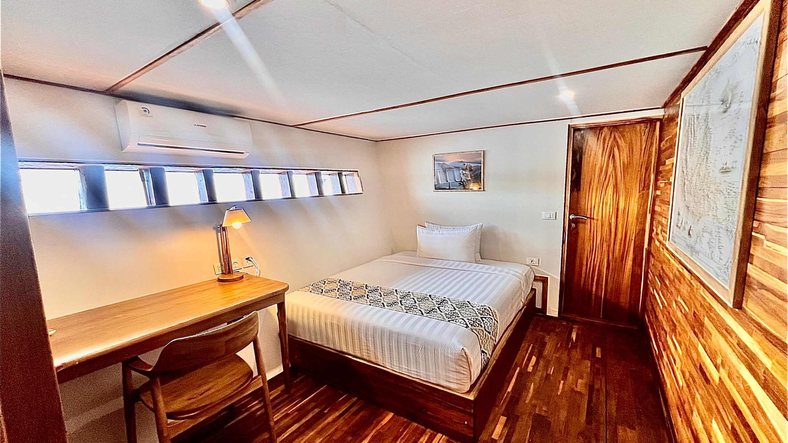 Naga Biru offers modern comforts, including air-conditioned cabins with en suite bathrooms, a dedicated camera room, indoor and outdoor dining areas, a sundeck, and a well-equipped diving deck. Each amenity is thoughtfully chosen to enhance your journey at sea.