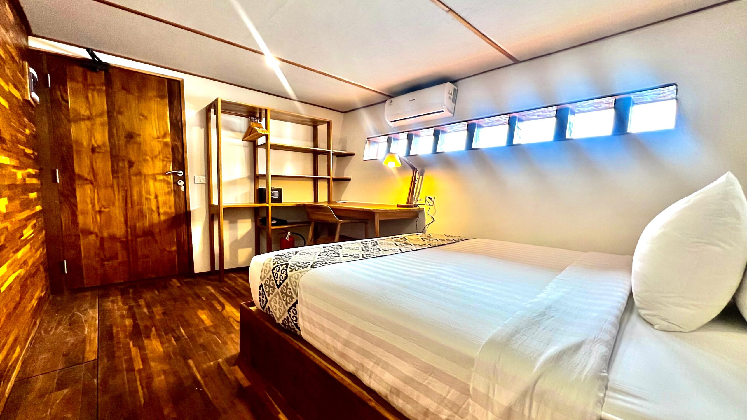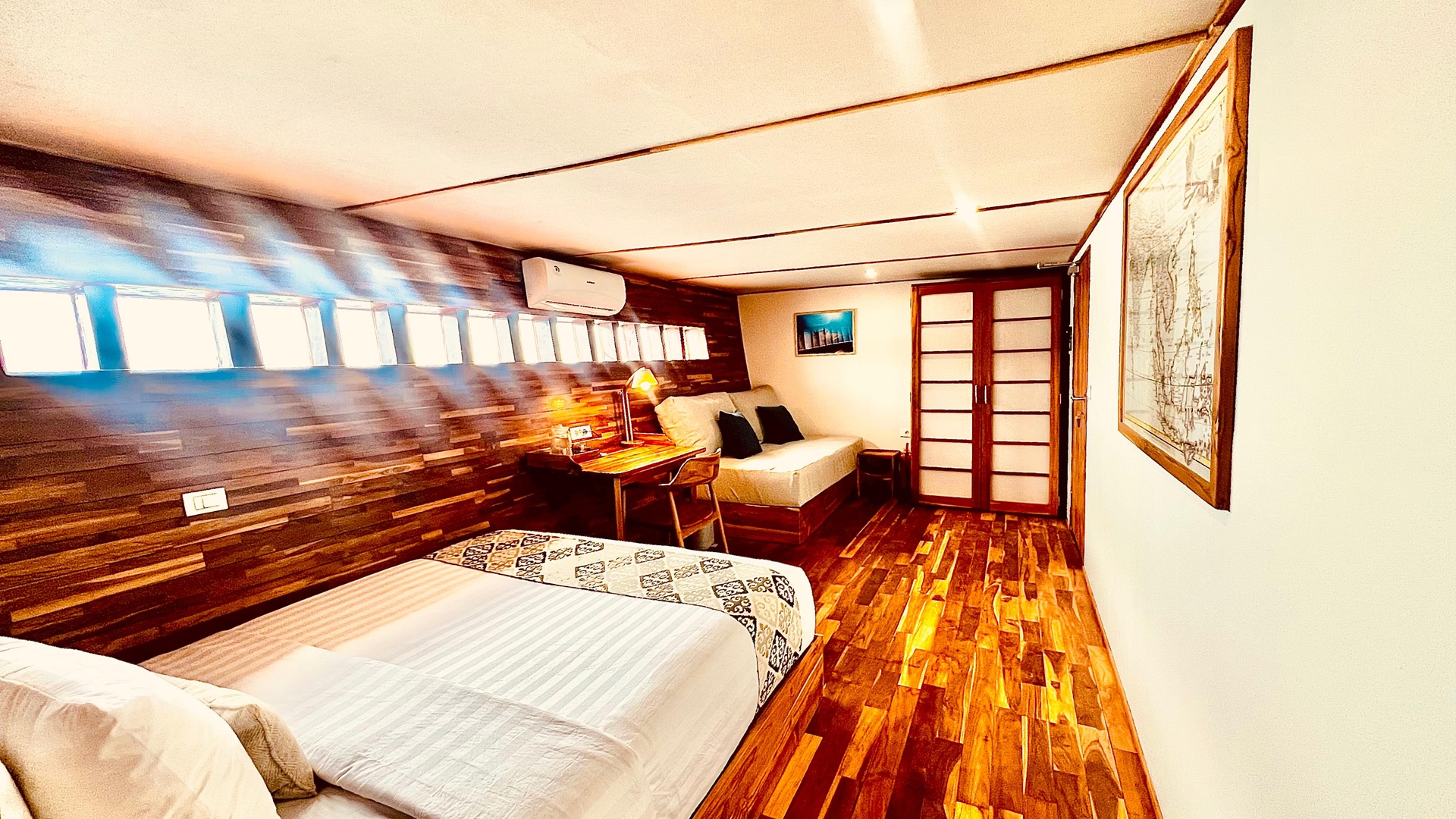 Naga Biru Liveaboard can host up to 12 guests on shared trips and can accommodate private charters of family and friends groups up to 16 guests.